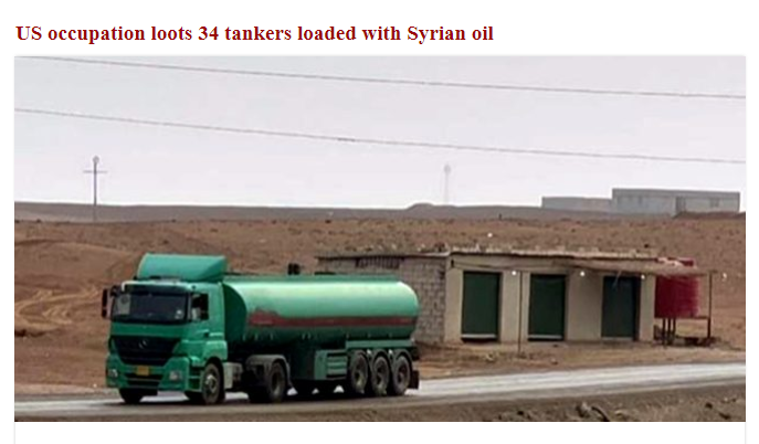 The US occupation forces have continued to loot Syrian oil as a number of tankers loaded with stolen oil have departed from Syrian territory over the past hours heading to the Iraqi territory.