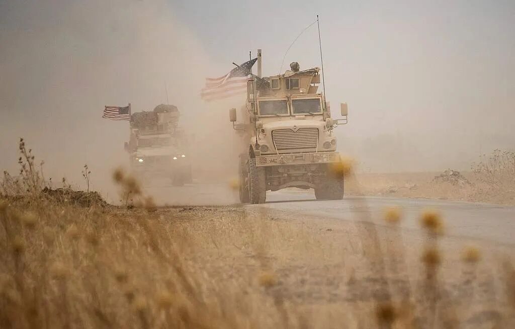 当地时间2020年7月1日,叙利亚东北部哈塞克省鲁梅兰,美军车辆行驶在一处油田附近。图源:视觉中国