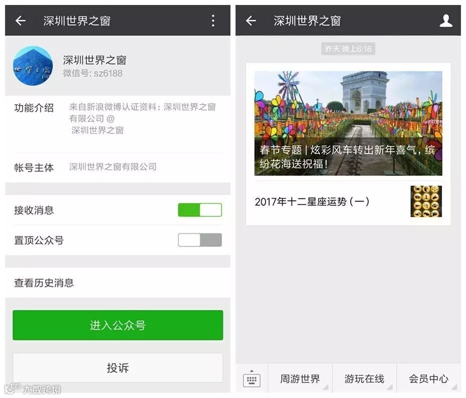 ①关注【深圳世界之窗】订阅号,点击“进入公众号”。