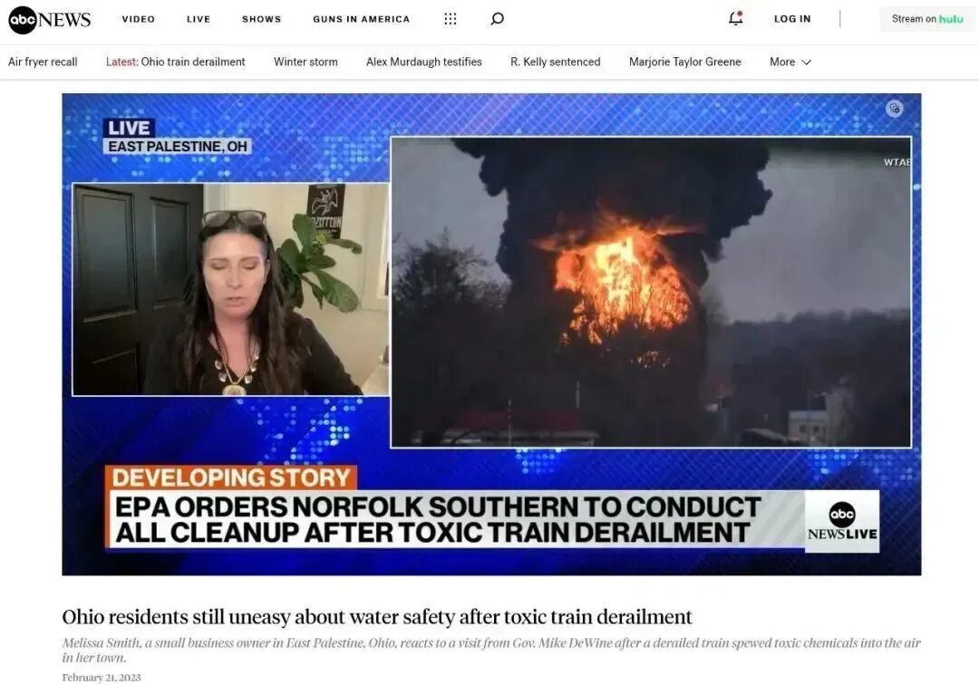 自从本月3日美国俄亥俄州东巴勒斯坦镇发生“毒列车”脱轨事件后,美国政府对于事故反应及后续化学品处理的方式备受质疑。