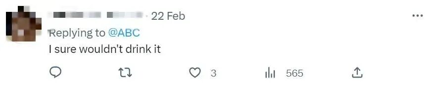 美国广播公司新闻网(ABC News)的推特放上了相关新闻动图,并在配文中使用了“sipped”一词形容喝水动作,即“一小口”、“抿”。外国网友们也发现,这些人喝得十分勉强,有人只是碰了下嘴唇……