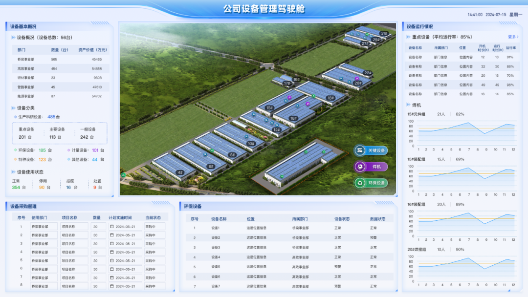 通过本次项目建设,集团可实时监控企业生产、焊机、环保等数据,实现“无人巡检、无纸办公”,让管理决策有据可依,大大提升了企业对各类设备及能源管理透明化、数字化水平。同时,通过建立完整的电子设备档案与预防性维护体系,规范维修流程,显著提升设备综合利用率(OEE)。基于精准的能耗数据监控与分析,企业可洞察节能空间,优化用能策略,实现能源成本的有效节约。
