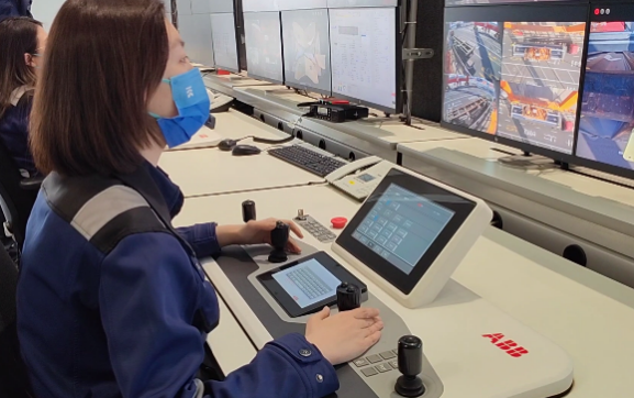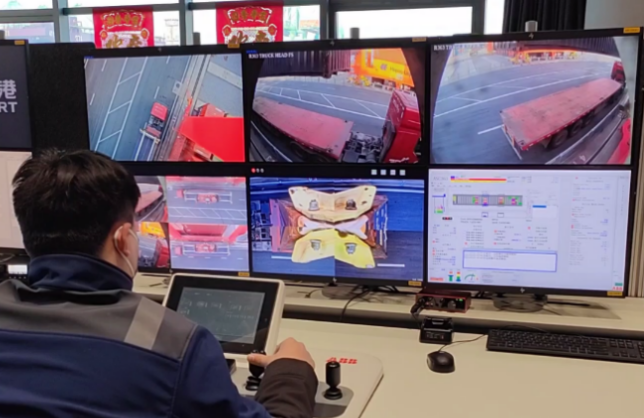 In the central control room operators can remotely control the unmanned electric container trucks in real time.