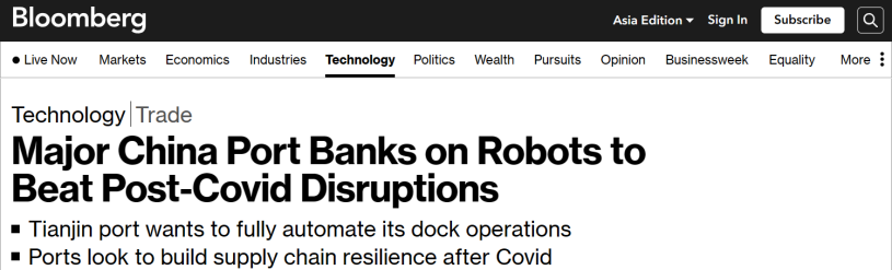 “Tianjin Port requires just 25% of the human workforce needed to run neighboring docks. The terminal is also fully driverless.”