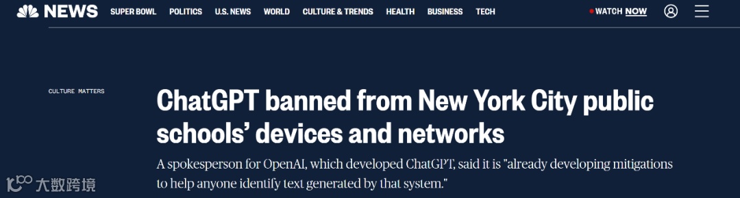在美国,纽约市教育部1月初宣布禁止学生在其学校的设备和网络上使用ChatGPT,以预防学生作弊的行为。