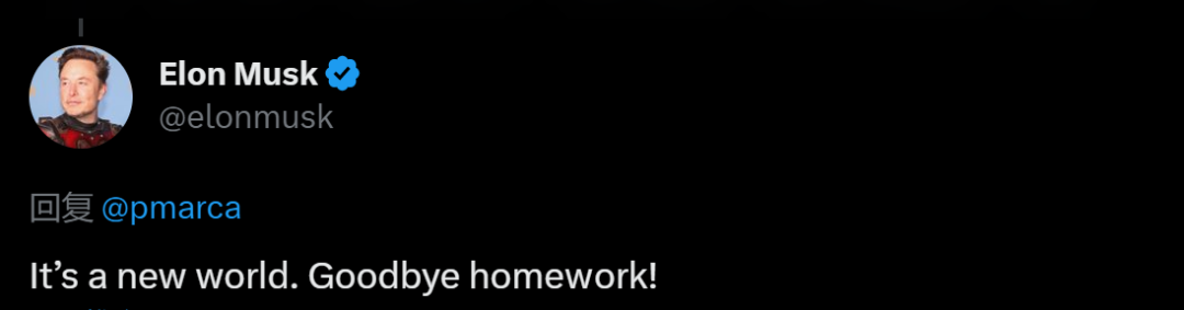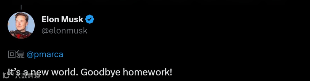 OpenAI的创始人之一马斯克(Elon Musk)曾在社交媒体平台上称赞ChatGPT:“这是全新的世界。和家庭作业说再见吧!”(It's a new world. Goodbye homework!)