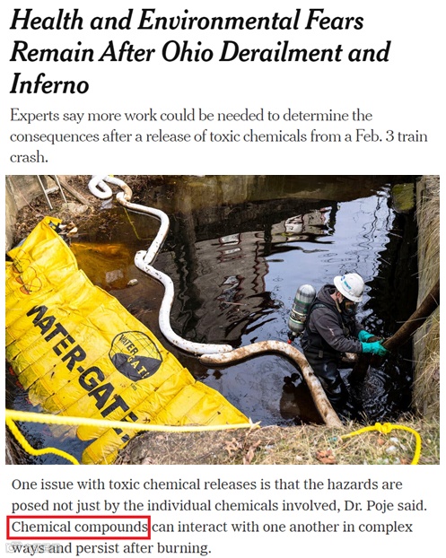 曾在美国环境保护局任职的生态战略专家埃瓦耶洛斯·瓦利亚纳托斯指出,泄漏化学品包括氯乙烯、丙烯酸丁酯、丙烯酸乙基己酯等,这会对当地环境造成长期破坏,甚至可能导致“慢性生态死亡”。