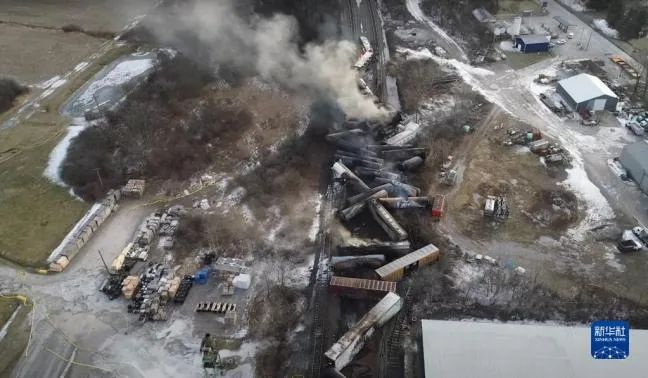 俄亥俄州火车脱轨事故 图源:新华社