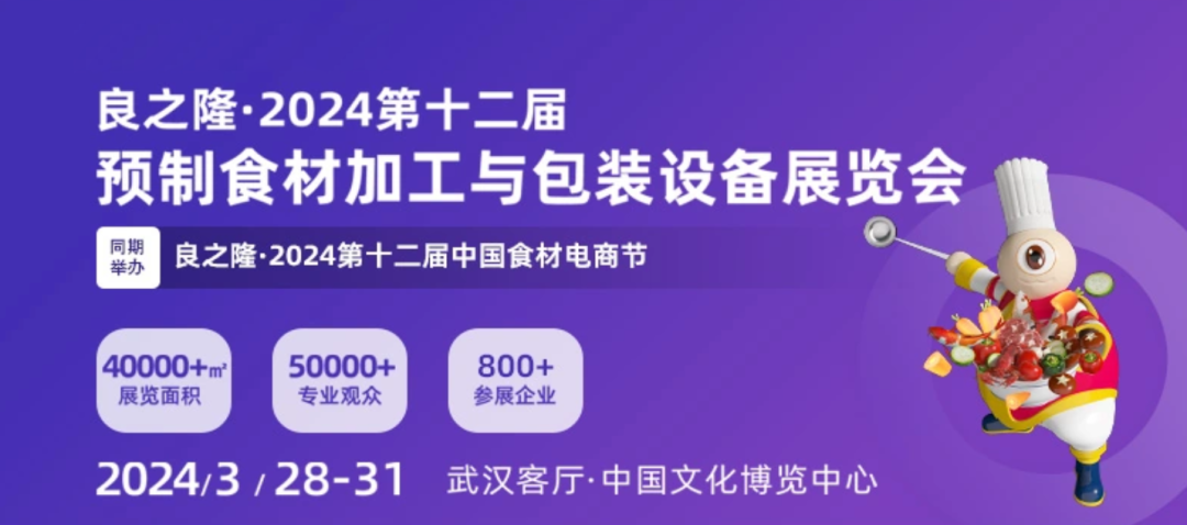 2024年3月28日-31日,良之隆·2024第十二届中国食材电商节与良之隆·2024第十二届预制菜加工与包装设备展览会将分别在武汉国际博览中心(国博)和武汉文化博览中心(客厅)举行,这是专业食材大型展会和预制食材大展。