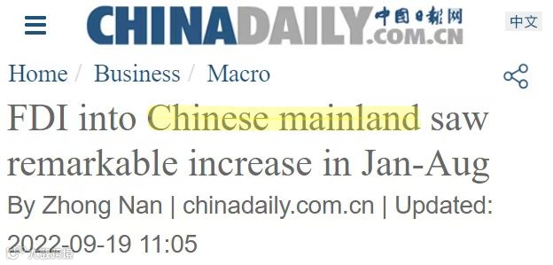 但国内英文媒体的提法则是“the Chinese mainland”。