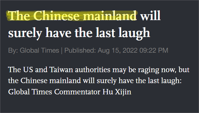 但西方媒体在涉台报道中频频使用“Mainland China”的表述,将其与“Taiwan”并列使用,无疑会造成一种印象,即大陆和台湾分属不同主权国家,这完全违背了一个中国原则,是西方的一个话语陷阱。