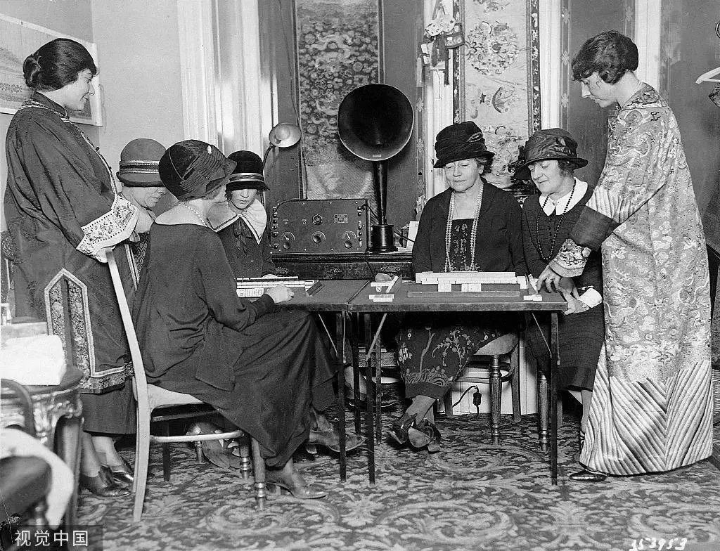 1920年左右的纽约,一群美国妇女们在上麻将课。图源:视觉中国