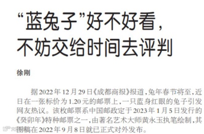Worker’s Daily published a comment, saying that everyone can express their views on whether the blue rabbit is good-looking or not, but time is the best test of the value of art.