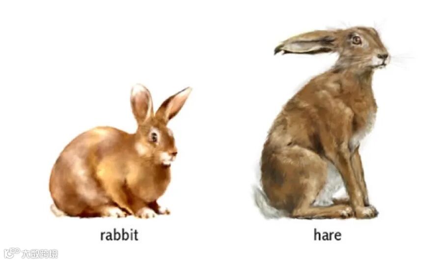 英文单词rabbit一般指家养或者宠物兔子。英文单词hare多指野兔。