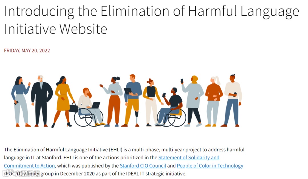 The guide says its goal is to eliminate "many forms of harmful language," including "racist, violent, and biased (e.g., disability bias, ethnic bias, ethnic slurs, gender bias, implicit bias, sexual bias) language" in Stanford websites and code.