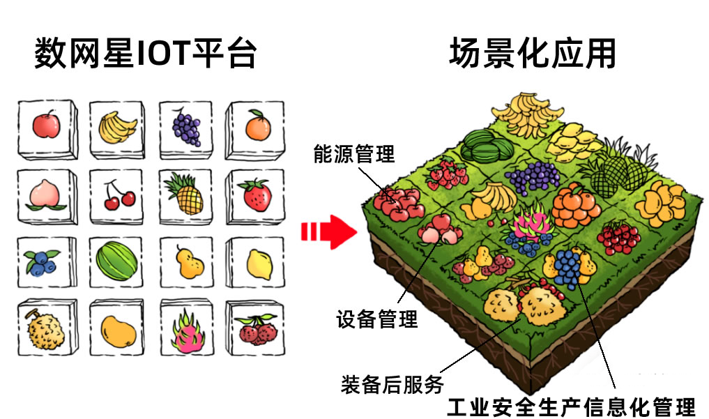 在数网星IOT平台的土地上,已经有现成的“果实”可供采摘,包括能源管理、设备管理、装备后服务、工业安全生产信息化管理等,集团大客户可根据自身情况选用这些套件应用。