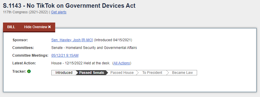 Many federal agencies including the Defense, Homeland Security and State departments already ban TikTok from government-owned devices. "TikTok is a major security risk to the United States, and it has no place on government devices," Hawley said previously.