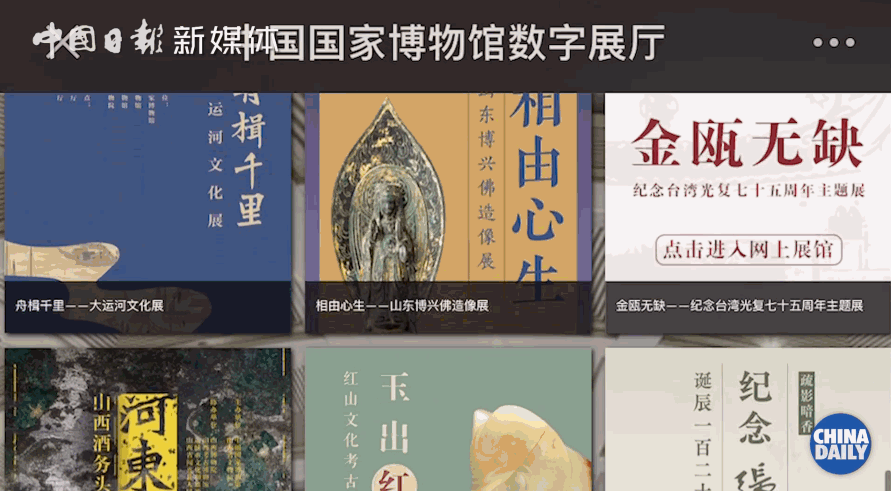 中国国家博物馆数字展厅中共有79个线上主题展览,不仅陈列着无数的中国记忆,还有来自世界各国艺术大师的作品展。既有“甘肃彩陶艺术”“大唐风华”等中华文明的瑰宝,也有“伦勃朗和他的时代” 等国外主题的展览。线上展览提供了全景实景观展体验,可以像身处博物馆内一样“边走边看”。