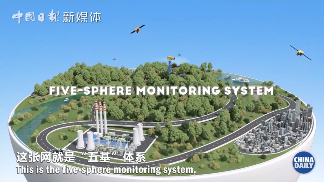 This is the five-sphere monitoring system, consisting of space-based satellites, space-borne remote sensing, aerial drones, mobile patrol vehicles and field observation.