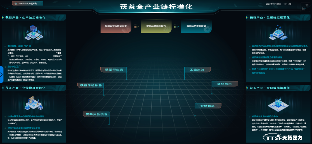 生产加工标准化:通过智能化平台赋能企业,推动智能加工标准化生产线等先进技术的行业应用,促进茯茶产品的标准化生产加工。 -