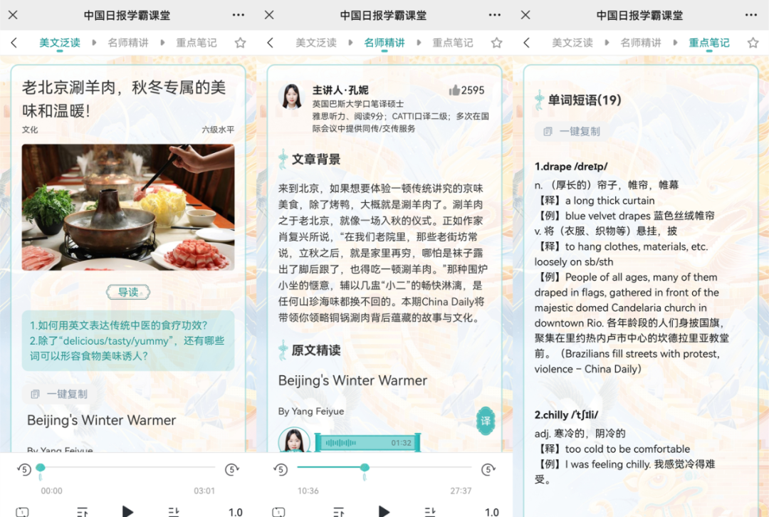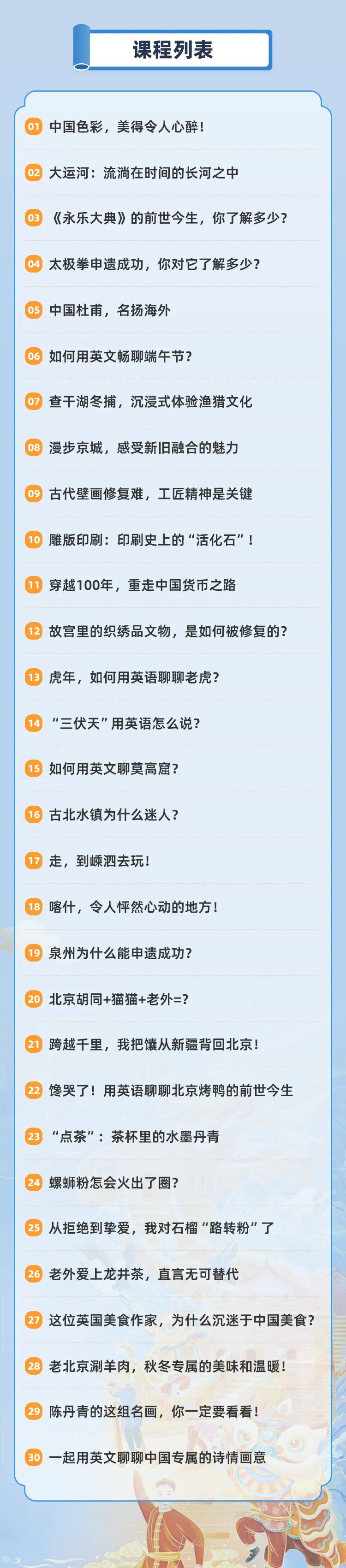 此次的中国文化专题课程脱胎于《China Daily精读计划》,如果你是精读计划会员,这些文章都能在《精读计划》里找到,不用单独购买哦。