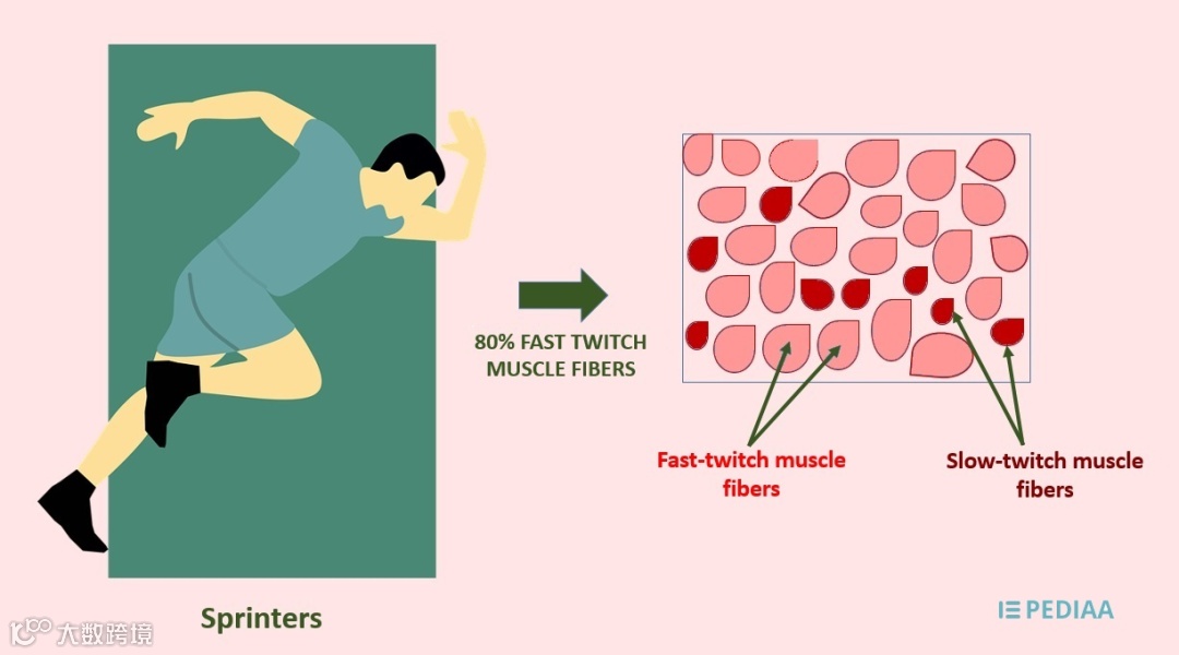 短跑选手含较高比例的快缩肌纤维 图源:Pediaa