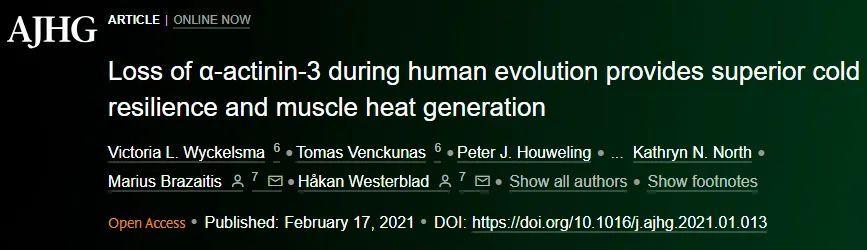 卡罗林斯卡学院生理学和药理学系的细胞肌肉生理学教授霍坎·维斯特布拉表示:“这表明缺乏α-辅肌动蛋白-3的人更擅长保暖,能够在极端天气中调节自身能量。但此前我们并没有发现直接的实验证据。”