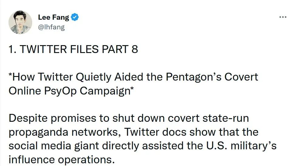 最新“推特密档”爆料美国国防部与推特合作操纵舆论