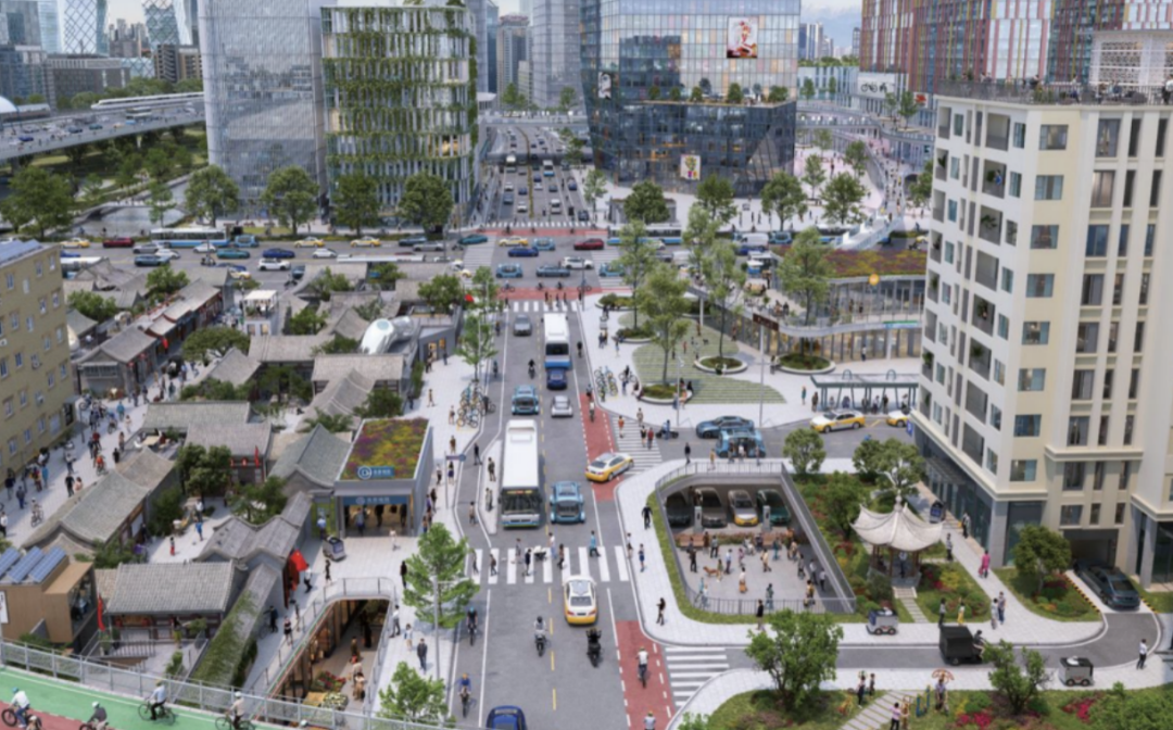 在以胡同为代表性的老城区,以密集的步行-自行车系统和社区共享汽车缓解停车压力,还有响应式自动驾驶公交车服务、智能物流配送系统送货上门等等,如下图: