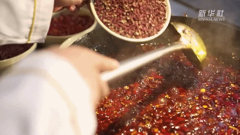 “The condiments are the soul of a hotpot. The good taste of condiments comes from well-selected ingredients and good control of the oil temperature. In other words, we need to control the duration and temperature of the heating process with precision,” said Wang Wenjun, vice-chairman of the Chongqing Hotpot Association.