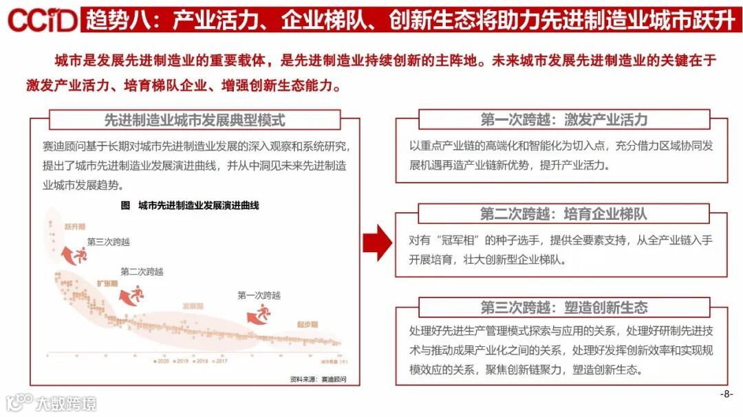 趋势八:产业活力、梯队企业和创新生态将助力先进制造业城市跃升。