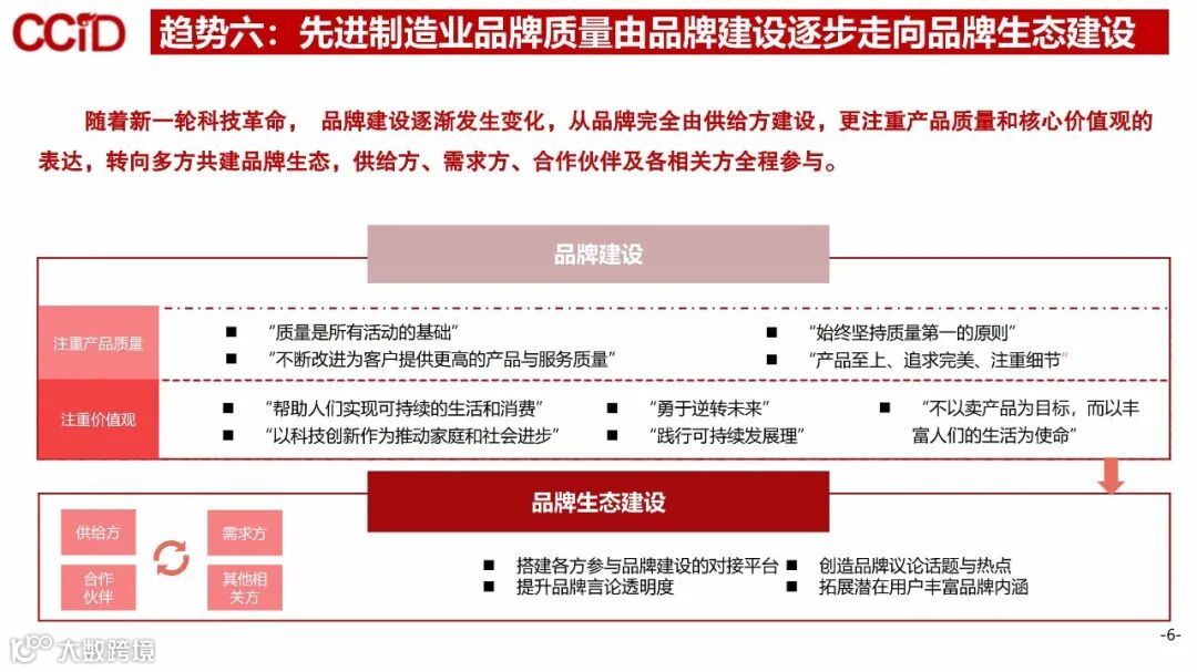趋势六:先进制造业品牌质量由品牌建设逐步走向品牌生态建设。