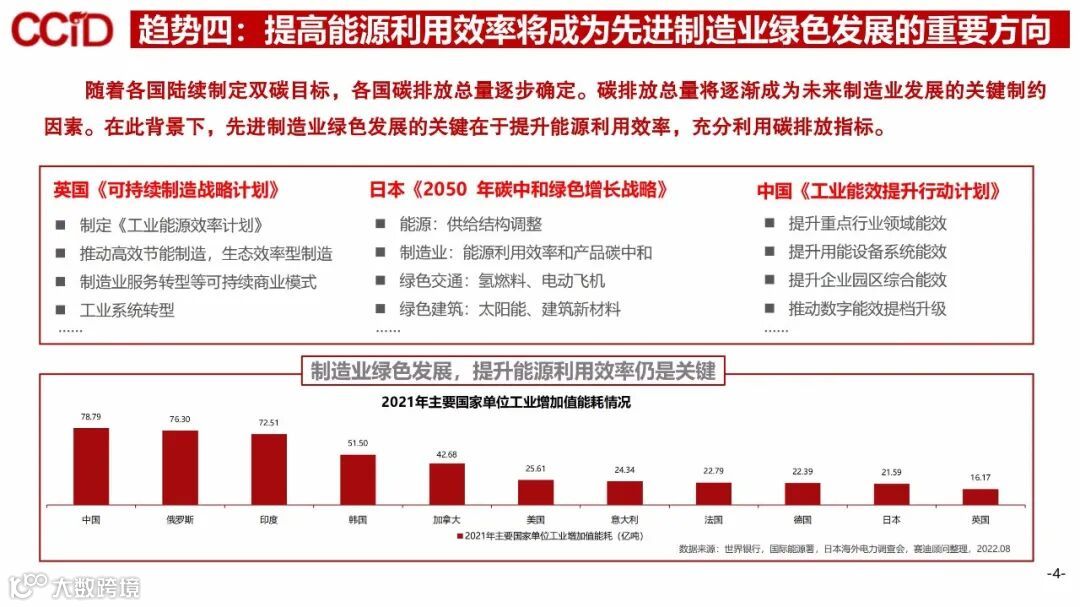 趋势四:提高能源利用效率将成为先进制造业绿色发展的重要方向。