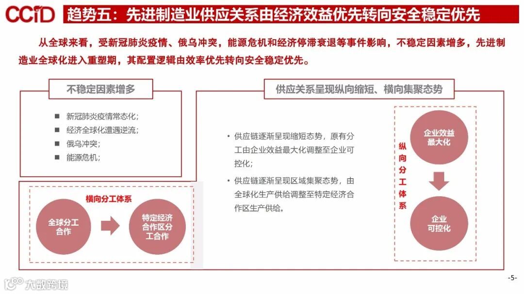 趋势五:先进制造业供应关系由经济效益优先转向安全稳定优先。