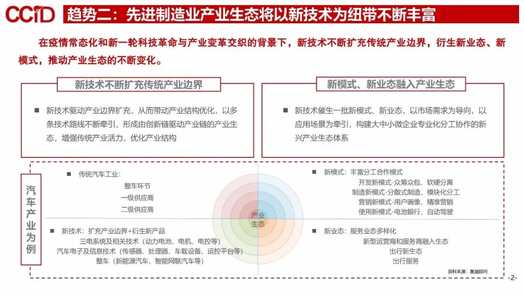 趋势二:先进制造业产业生态将以新技术为纽带不断丰富。
