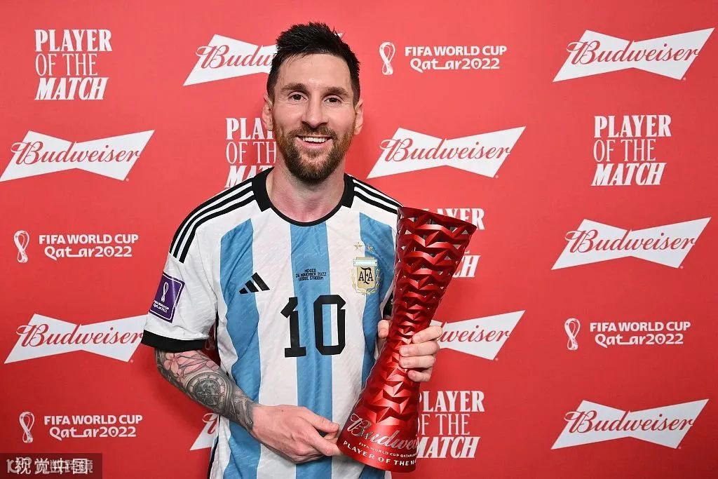 比赛进行到第64分钟,梅西世界波破门,打入个人世界杯第8个进球,进球数追平了马拉多纳和C罗,同时21次世界杯出场也追平了马拉多纳。不仅如此,梅西还收获了第13场世界杯胜利,超越马拉多纳成为队史第一。