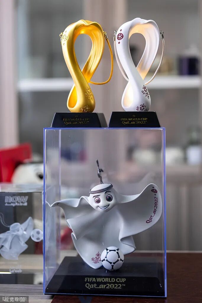 作为卡塔尔世界杯组委会的供应商之一,陈雷刚所在的厂商负责设计和生产吉祥物毛绒玩具、帽子3D水晶钥匙扣、手办、奖杯复制品以及树脂灯等官方纪念品。