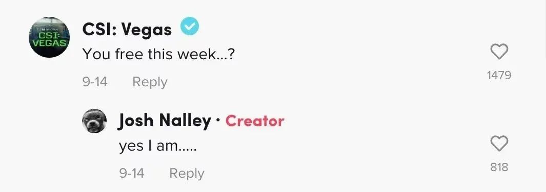 Every day for nearly a year, Josh Nalley posted TikToks of himself playing dead in the hopes of being cast in a television series or movie. Then "CSI: Vegas" reached out.