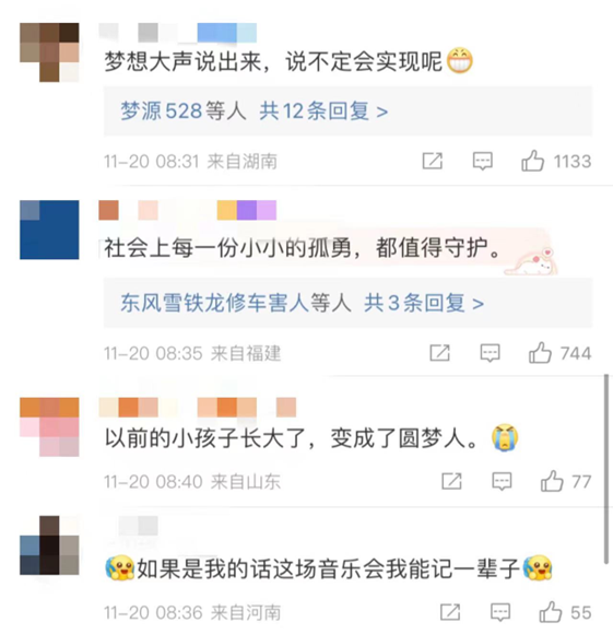 不少网友对小朋友的做法感到佩服,也为乐队的回应感到暖心。