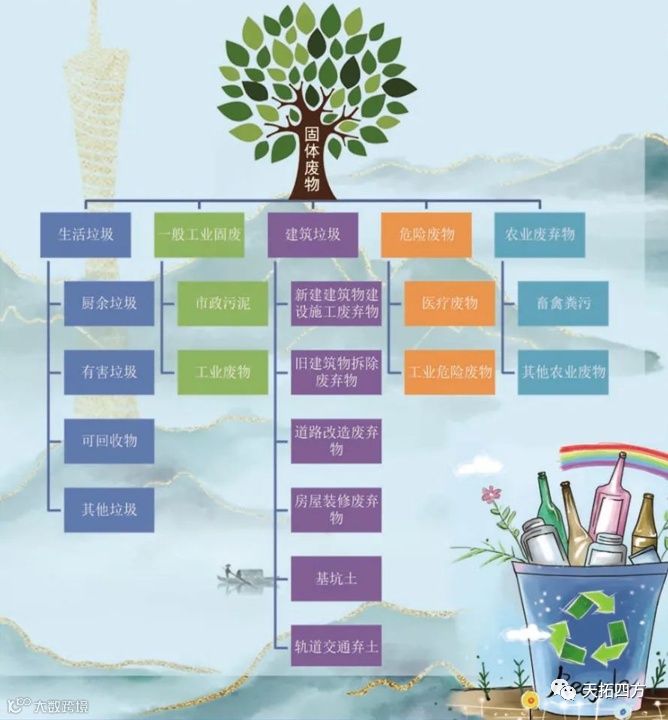 “无废城市”中的“废”主要指固体废物,是指生产生活中产生的丧失原有利用价值或虽未丧失利用价值但被抛弃或者放弃的固态、半固态和置于容器中的气态物品、物质以及法律、行政法规规定纳入固体废物管理的物品、物质。按来源一般分为生活垃圾、建筑垃圾、工业固体废物、医疗废物和农业废弃物等,按危害程度又可分为危险废物和普通废物。