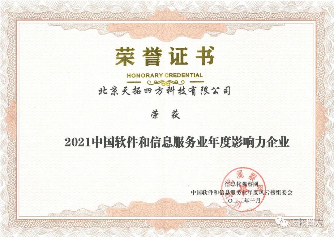 天拓四方连续三年荣获“北京市诚信创建企业”称号