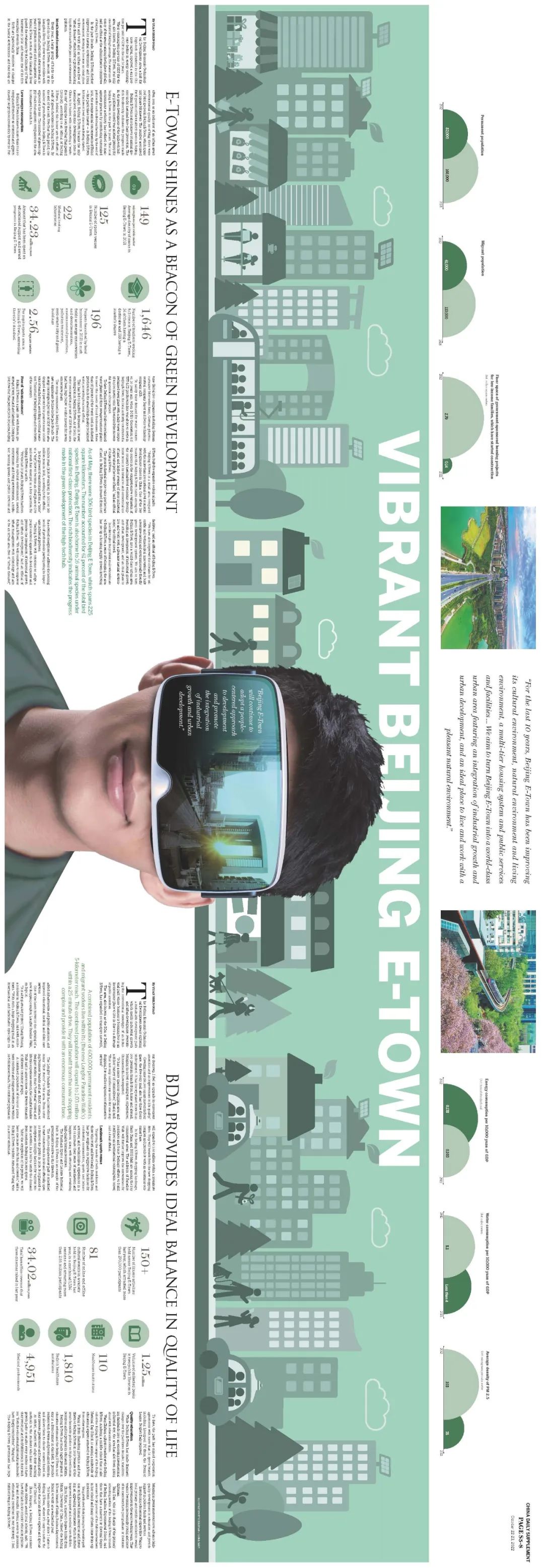 八联版背面的两篇报道分别介绍了经开区在宜业宜居绿色城区建设和产城融合两方面所做的工作和取得的成绩,展示了它注重绿色环保、充满人文关怀的B面。