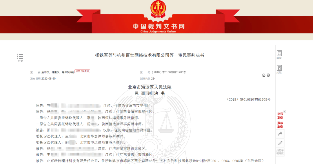 The six defendants were ordered to pay 336,900 yuan ($47,500) in total, as their behaviors had a causal relationship with the death of the victim, according to the verdict, which was made in November 2021, but only published recently on the website China Judgements Online.