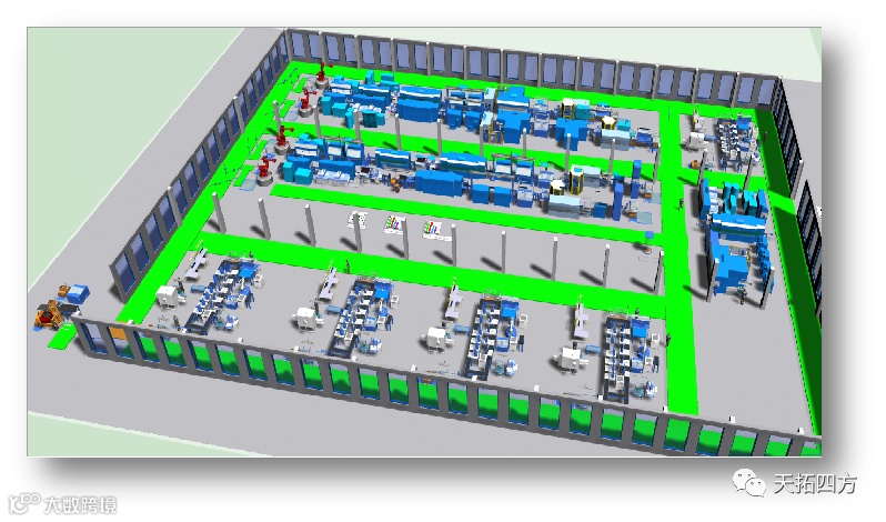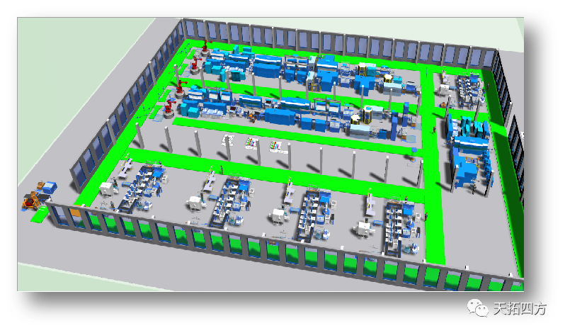 基于以上问题,天拓四方打破传统方案限制,利用数字化仿真技术,为企业提供包括非标自动化线体设计以及自动化系统、传感识别、智能装备、数据互联互通的整体集成服务。帮助生产企业在进行产线/工厂规划设计时,通过数字化的仿真设计手段有效的解决客户所关心的上述问题,并借助于制造仿真工具对设计方案进行建模、仿真和优化生产系统,分析和优化生产布局、资源利用率、产能和效率、物流和供需链,以及对于混合产品订单与产品的柔性生产进行排产仿真,提前预知投产情况,对企业的项目决策提出科学依据。