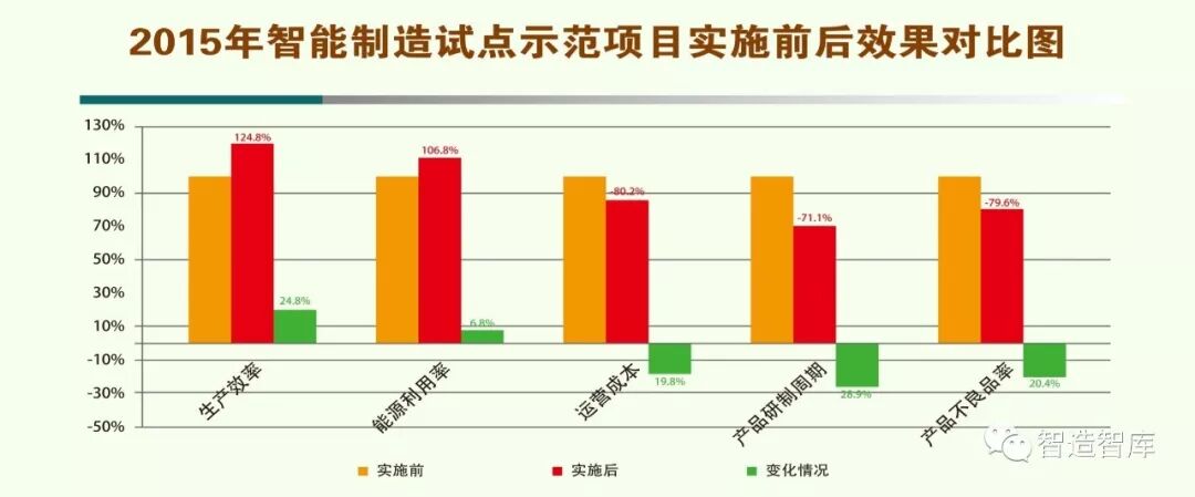 预期的对产业带动影响的目标是:到2020年,制造业重点领域智能化水平显著提升,试点示范项目运营成本降低30%,产品生产周期缩短30%,不良品率降低30%。到2025年,制造业重点领域全面实现智能化,试点示范项目运营成本降低50%,产品生产周期缩短50%,不良品率降低50%。