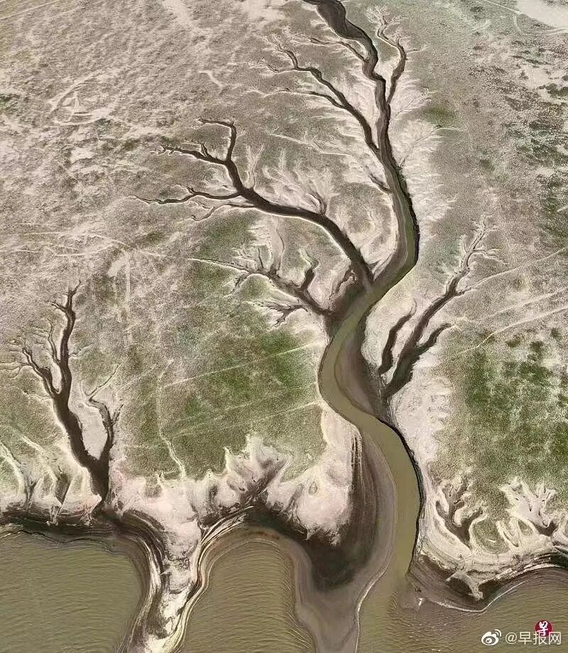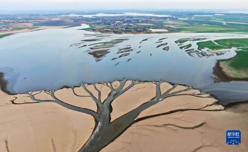 Satellite images showed an alarming sign of the mud flats presenting tree-shape landscapes in the Jinxian section of desiccated Poyang Lake on Monday. The water level in Poyang, China's largest freshwater lake, continues to drop sharply because of a spate of high temperature days with little to no rain in the area.