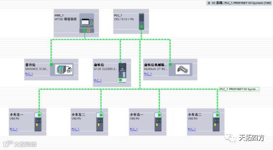 本次为大家分享的是天拓四方近期竣工的项目,该项目的垂直塔式立体车库也是属于堆垛式立体车库的一种,项目解决方案由SIMATICS S7-1500PLC、SINAMICS S120、SINAMICS G120和SINAMICS V90伺服驱动以及HMI组成的一网到底式的Profinet通讯控制系统中,驱动系统保证了智能立体车库的稳定性,快速响应性,以及高精度定位等相关性能,加之调试简单,让西门子GMC驱动产品大大彰显了现代化立体车库的的自动化、智能化以及现代化。