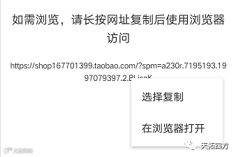 步骤三:安卓手机可选择“”手机淘宝”打开,或者在“浏览器打开”;苹果手机需复制链接后,再打开手机浏览器,将链接粘贴到浏览器中打开