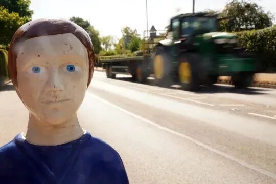 The mannequins sit along a busy road in the village of Stoney Staunton in Leicestershire to remind drivers to be careful as there could be kids in the area.