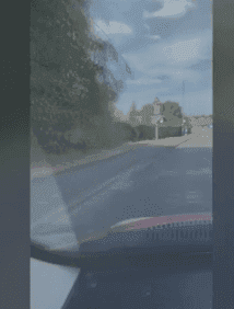 The video clip shows Andrew driving past the figures, followed by close ups of their stoney-faced expressions staring into the distance.